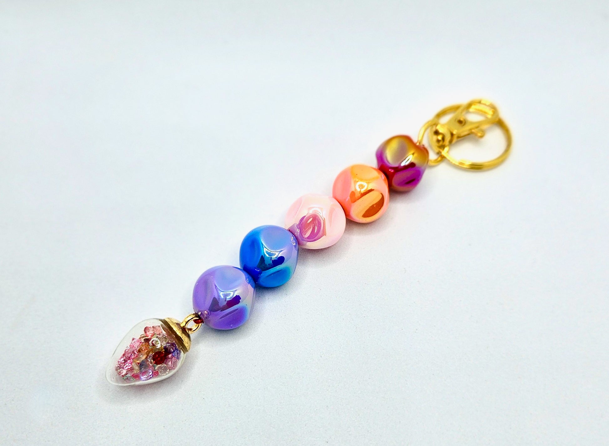 Add a splash of personality to your bag or keys with this vibrant keychain charm. Featuring a stunning multicolored accent at the end, it’s the perfect way to brighten up your everyday carry. Whether clipped to your keys or hanging from your bag, this cheerful charm gives your everyday essentials a cheerful glow.