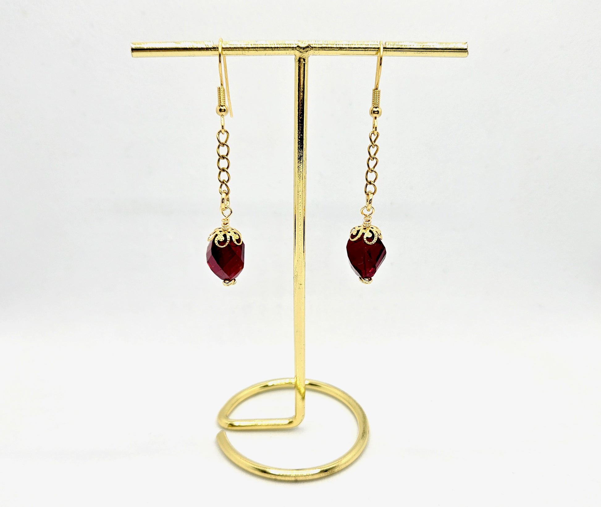 Make a statement with these playful drop earrings crafted from gold-plated stainless steel wire and chain, crowned with a brilliant ruby red cut glass bead that catches light beautifully. Sophisticated yet fun, they bring just the right sparkle and richness to elevate any look with effortless elegance.