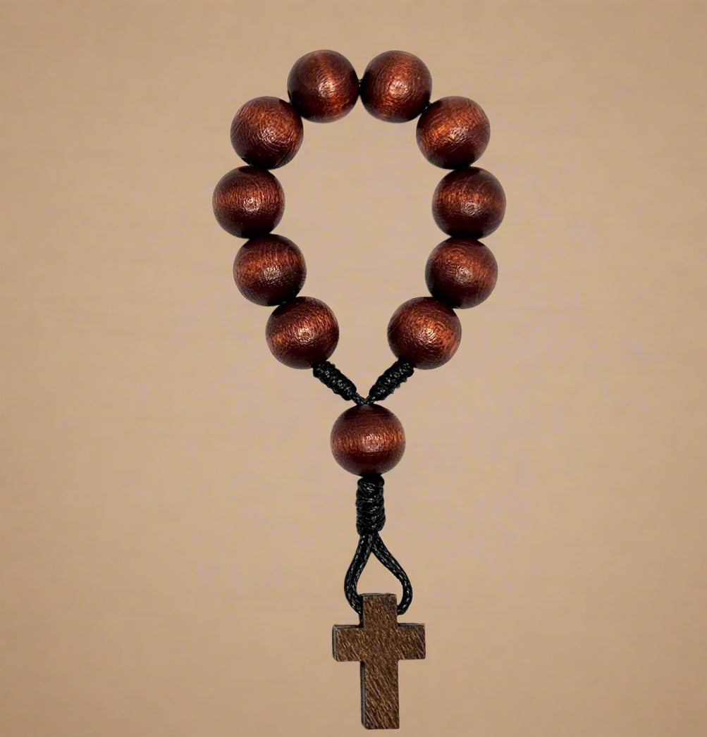 Known as a finger or one-decade Rosary, it can be used to pray a single decade or a full Rosary by repeating the prayers five times around.